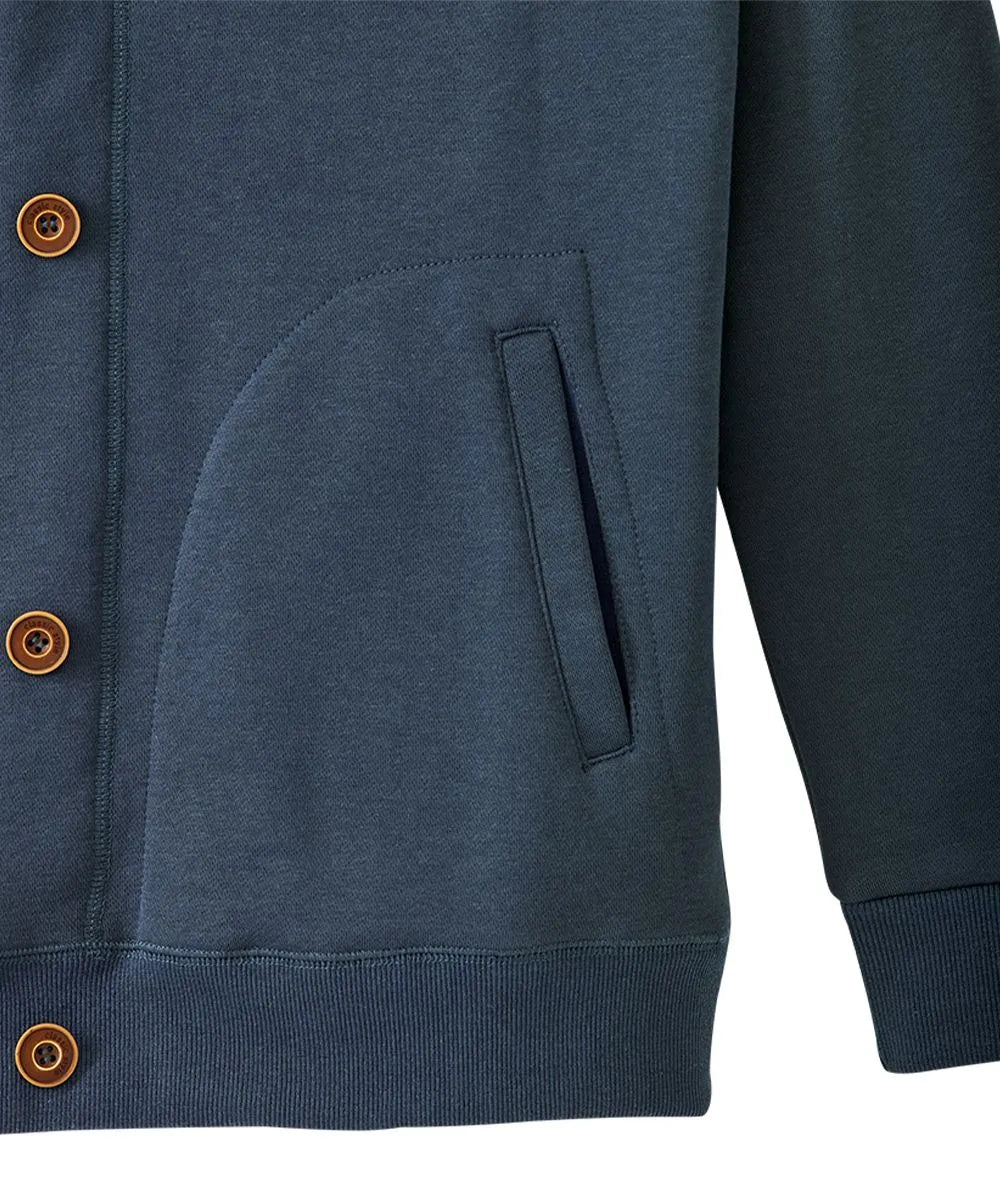 The Men's Magnetic Button Front Bomber Jacket is your solution for self-dressing convenience. Those hidden magnetic buttons make fastening your jacket as simple as a touch of the hand. With classic decorative buttons and two convenient side seam pockets, this cardigan is not only practical but also stylish. It's made from our super-soft sweater knit fabric, providing warmth and comfort throughout the day. Embrace ease and style in one package with our magnetic bomber jacket.