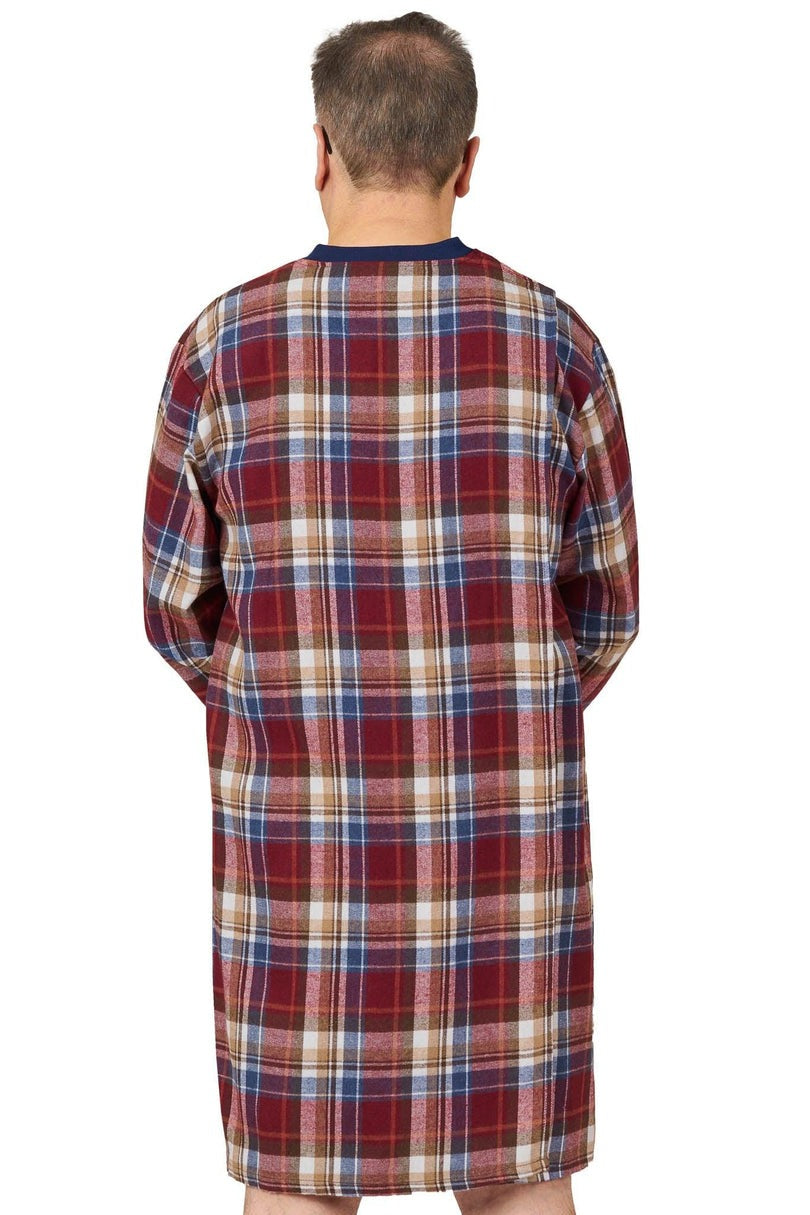 Experience cozy comfort and effortless assisted dressing with the Stewart Adaptive Nightshirt in Indigo, Black and Burgundy. Designed with both dignity and practicality in mind, this classic plaid nightshirt features a full open-back design with discreet snap closures, making dressing and undressing smooth, gentle, and stress-free for individuals with limited mobility.