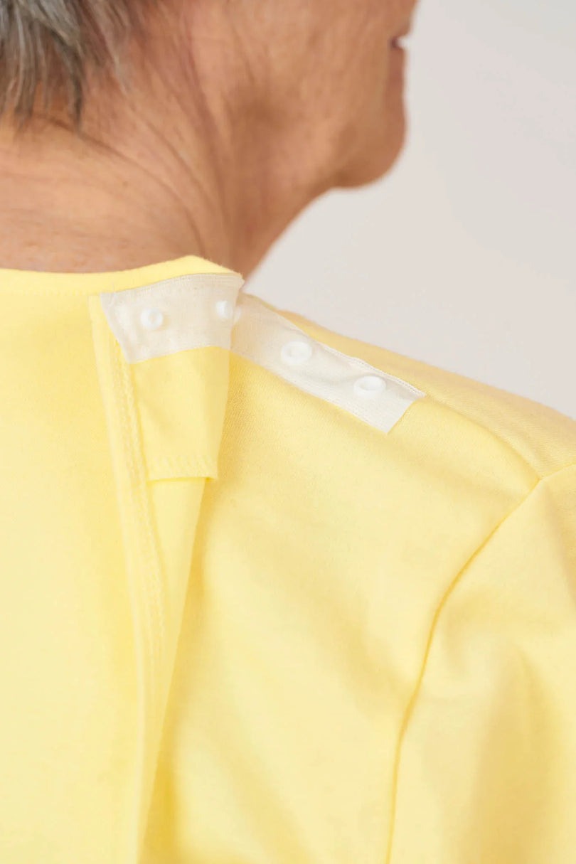Discreet Shoulder Snap Closures: Strategically placed snaps make caregiver-assisted dressing quick and gentle.