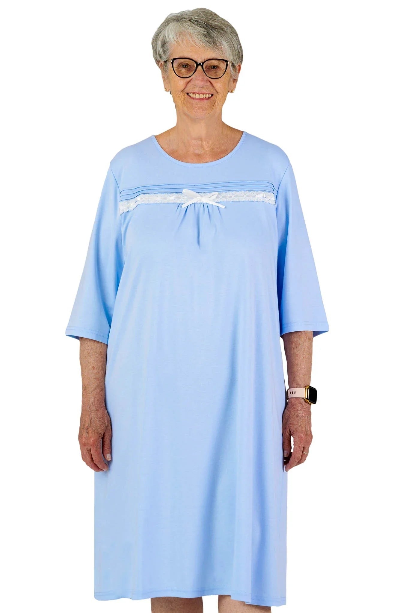 Feel cozy, feminine, and effortlessly dressed with the Bow Long Sleeve Adaptive Nightgown. Designed for comfort and dignity, this beautifully detailed nightgown combines soft interlock knit fabric with discreet adaptive features to make dressing easier for individuals with limited mobility—without compromising style.