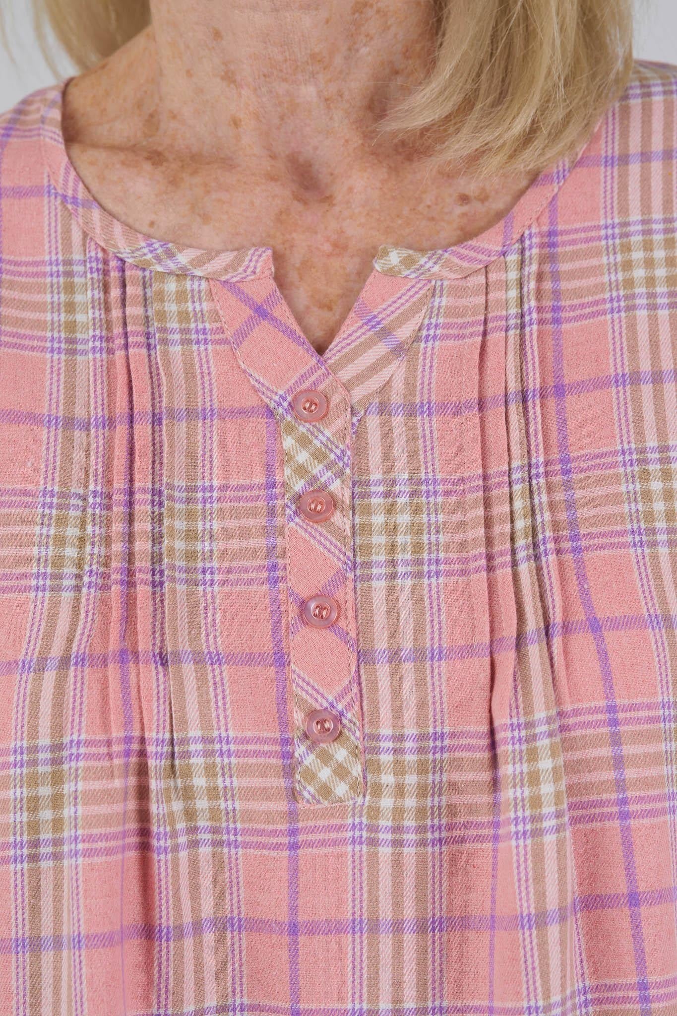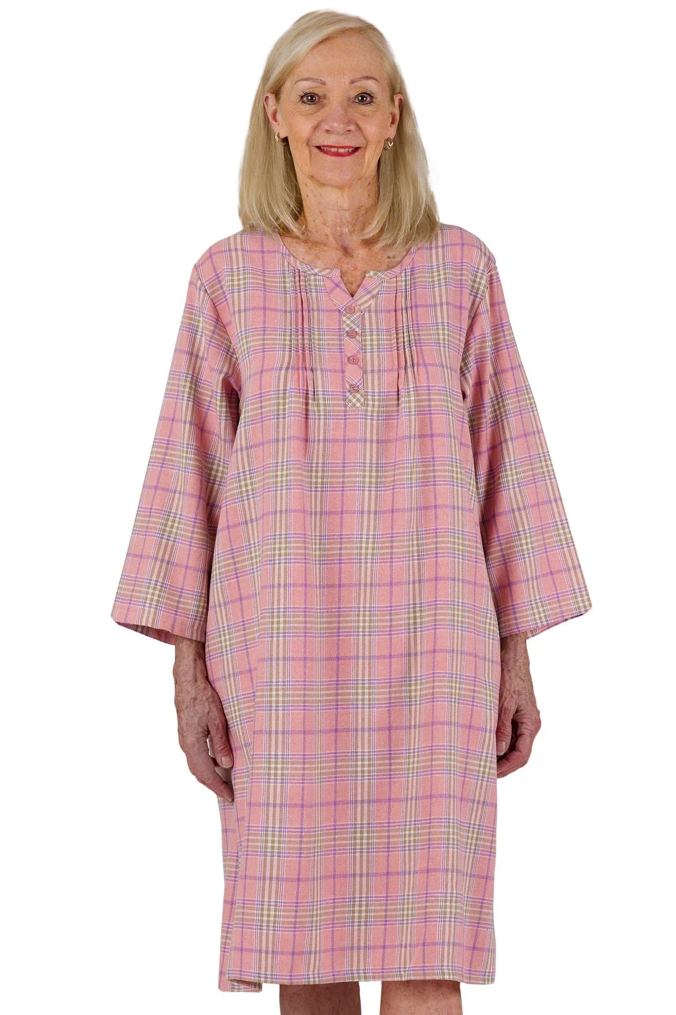 A soft and cozy flannel nightgown designed for comfort, dignity, and ease in care settings or at home. Thoughtful details provide a more comfortable and discreet alternative to traditional hospital gowns.